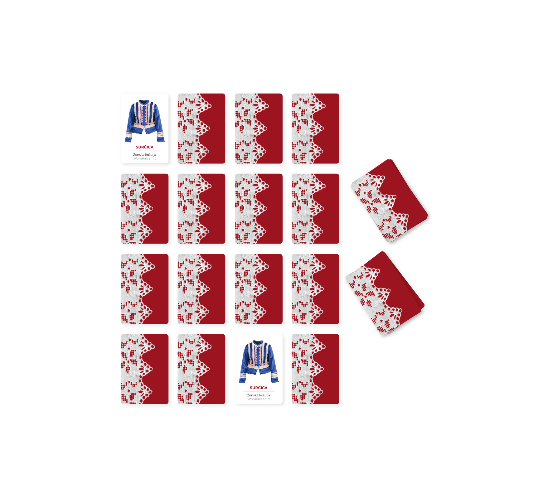 Memory igra edukativnog karaktera s ciljem očuvanja narodne baštine Hrvatske. Memory sadrži 40 kartica putem kojih upoznajemo 20 različitih dijelova narodnih nošnji, instrumenata i rukotvorina; svaka kartica sadrži naziv na dijalektu govornog područja, hrvatskog književnog jezika i engleskog jezika.
